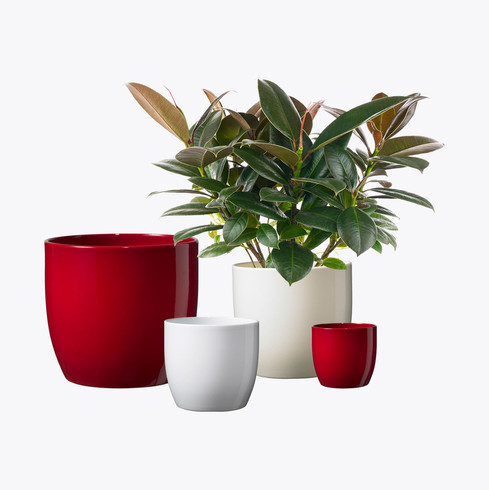 Ceramic glazed large plant pot with a tonal red colour. Looks great with statement plants.
